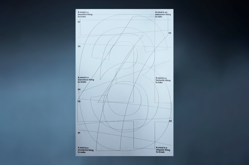 Au centre de l’affiche se trouve une réalisation 3D abstraite de Georg Fasswald, fréquent collaborateur autrichien du studio. La proposition graphique est accompagnée de phrases de Steve Savage qui, fidèle à lui-même, use d’anaphores pour parler de raison. Les affiches ont aussi été animées et publiées pour promouvoir la soirée dansante.